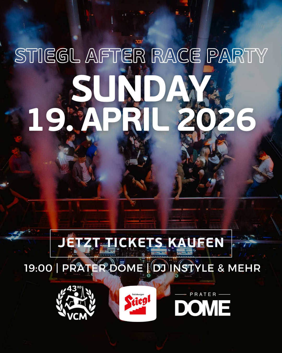 Am Abend des 19. April 2026 wird getanzt, gefeiert und dein Marathon-Erlebnis auf ein neues Level gehoben – bei der legendären Stiegl After Race Party 2026. Dieses Jahr: größer, lauter und unvergesslicher als je zuvor!