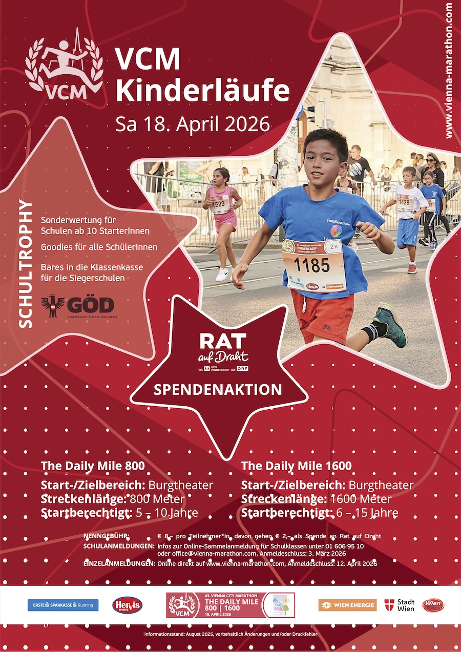 Beim Vienna 5K und bei den Kinderläufen The Daily Mile 800 | 1600 kannst du wählen, ob du