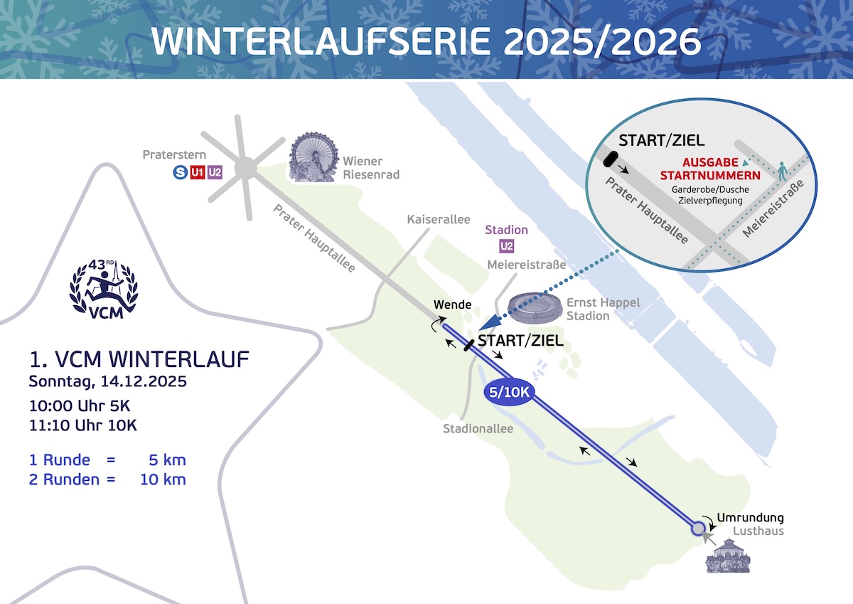 Beim ersten Bewerb am 14. Dezember laufen wir 5 km und 10 km in der Prater Hauptallee. Wir freuen uns auf dich!
